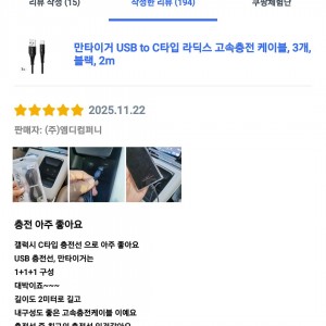 [상품평] 쿠팡_만타이거 USB to C타입 라딕스 고속충전 케이블 블랙 2m 3개