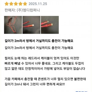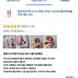 [상품평] 쿠팡_만타이거 PD C to C타입 라딕스 초고속 충전케이블 레드 2m 2개
