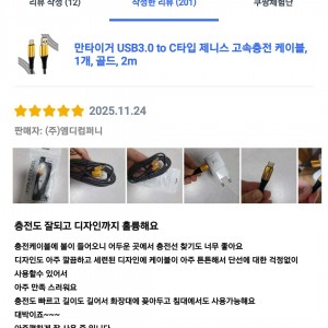 [상품평] 쿠팡_만타이거 USB3.0 to C타입 제니스 고속충전 케이블 골드 2m 1개