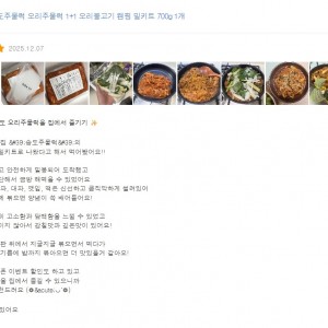 집에서 간단하게 매콤한 메뉴가 먹고 싶어서 오리주물럭을 주문해봤는데, 생각보다 훨씬 맛있어서 깜짝 놀랐어요. 오리고기 특유의 누린내가 거의 없고, 양념도 너무 달지 않아서 질리지 않는 맛이에요. 팬에 볶기만 하면 기름기가 자연스럽게 나오면서 고기가 촉촉하게 익는데, 이때 파나 양파만 살짝 추가해도 진짜 식당에서 먹는 고퀄리티 맛이 납니다.